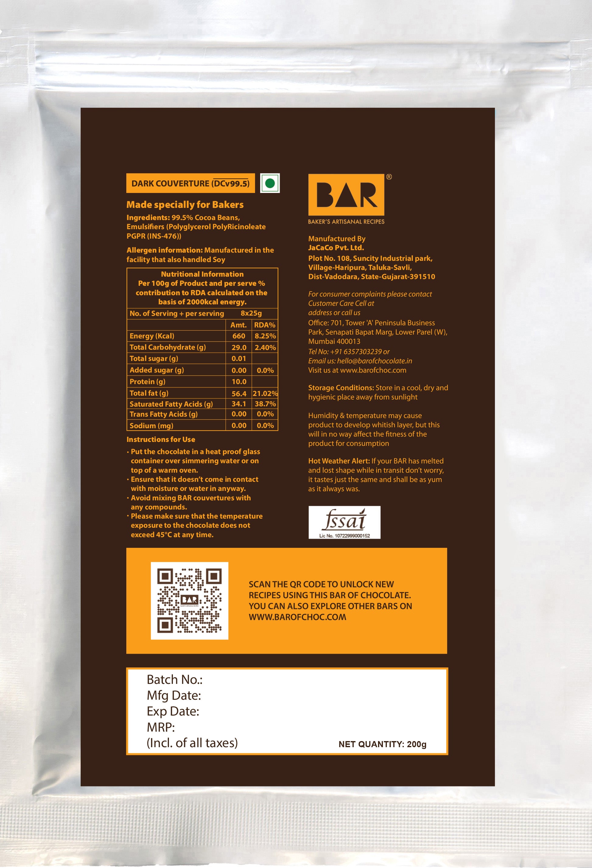 Introducing, BAR Dark Couverture Chocolate 99.5%, the newest member of the BAR family crafted for those who crave the purest, most intense dark chocolate. This is pure, unadulterated dark chocolate perfection.