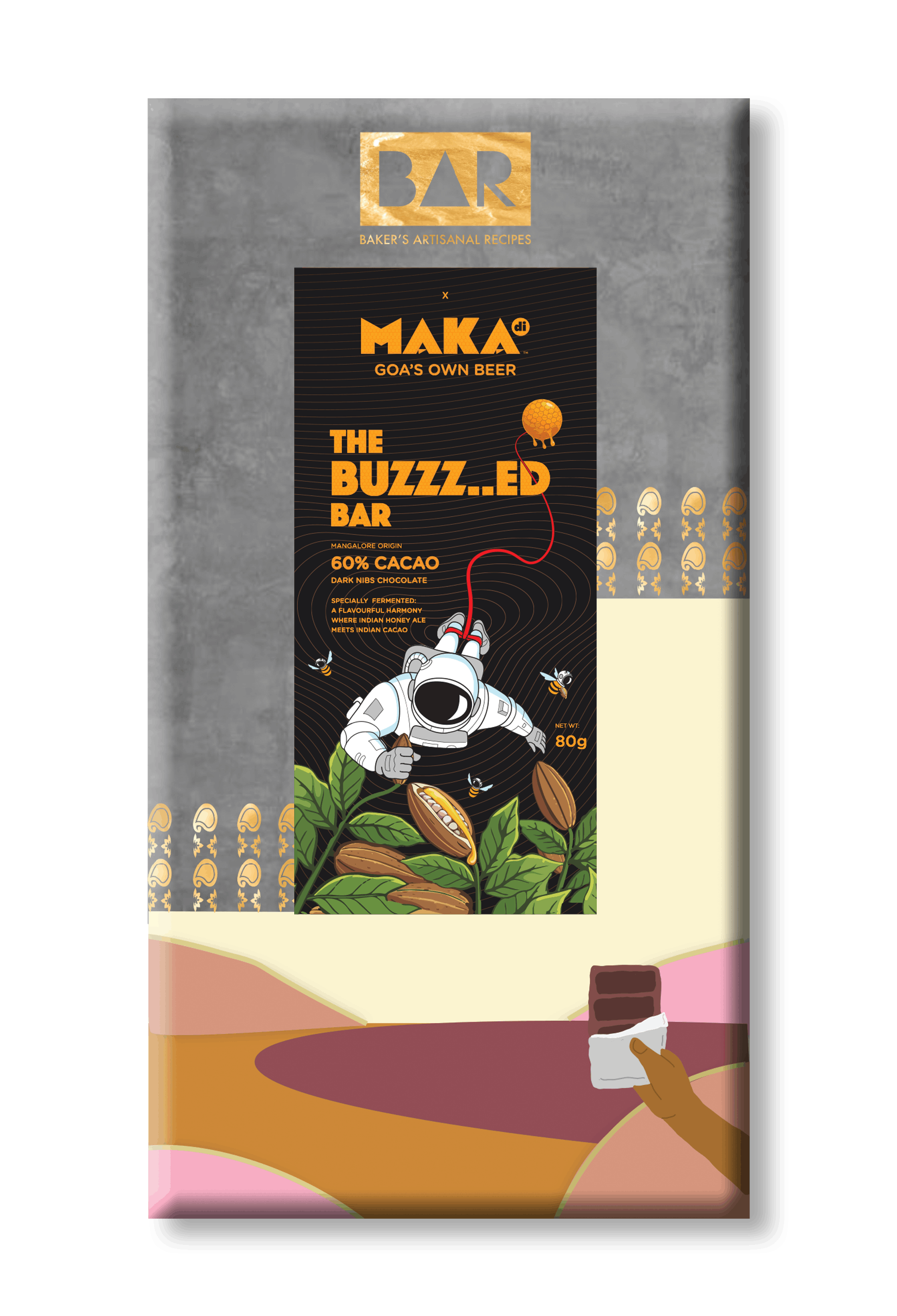 Presenting The BUZZZ..ED BAR - India's first ever beer fermented craft chocolate made with the flavorful Mangalorean cacao, fermented with Maka di's honey ale beer